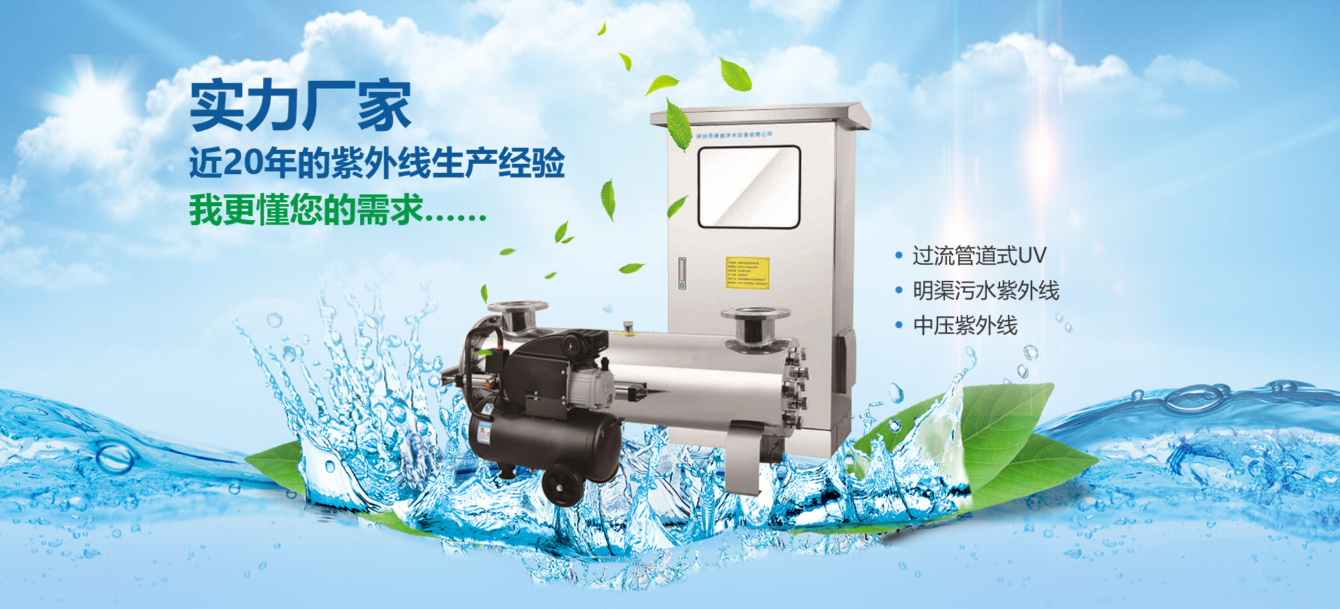 市政供水紫外線消毒器、凈水紫外線消毒器、食品飲料紫外線消毒器、二次供水紫外線消毒器、自來(lái)水紫外線消毒器、游泳池紫外線消毒器、農(nóng)村水改紫外線消毒器、水箱消毒器、自動(dòng)清洗紫外線、污水紫外線消毒器、管道/過(guò)流式紫外線,、明渠污水紫外線、中壓紫外線消毒器